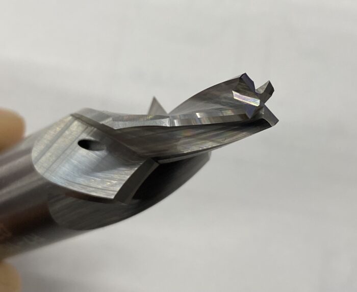 この刃の役割分担により、外径から45°面への立ち上がりで砥石Rの影響を受けにくい刃先構造を実現しています
